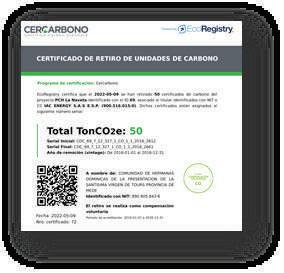 Certificación en CARBONO NEUTRO, donde se reconoce el compromiso y la definición de una política o estrategia que incluye la neutralidad y el desarrollo de un programa para la gestión de las emisiones de gases efecto invernadero, resultantes de la cuantificación de estas con el propósito de neutralizar sus emisiones.