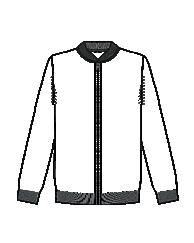 • Tubular front placket covers the zipper for a streamlined look