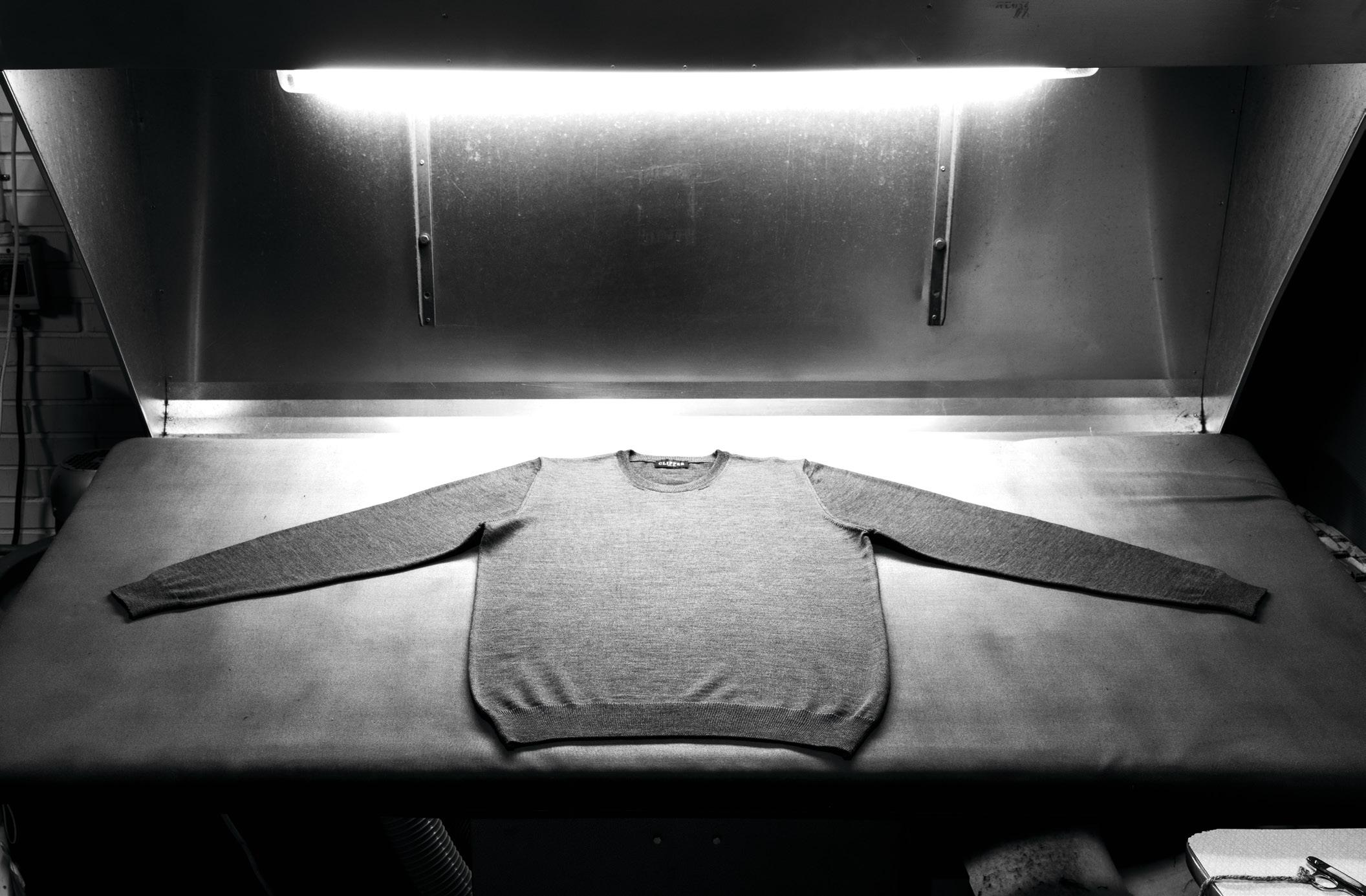 We handpick the best manufacturers – each with their speciality – from around the world for all parts of our production. For all processes – from raw materials, spinning, dyeing to knitwear production – we employ specialists. Most of our wool is from Australian sheep and is spun into yarn in Biella. We have our own knitting facility in Latvia, knitting our classic styles on original Stoll machines, adding an authentic handfeel to our knitwear.