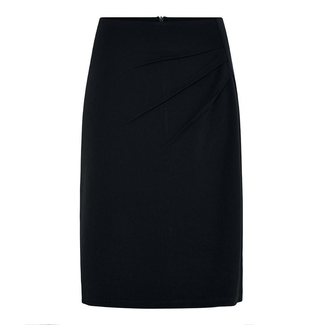 Made from a blend of viscose and polyamide with elastane · Viscose provides moisture-wicking properties and a smooth feel against the skin · Polyamide adds durability, strength and high shape retention · Elastane for flexibility, freedom of movement without feeling restricted · Luxuriously soft hand feel for a premium, comfortable wear · Extremely durable and resistant to wear · Knee-length skirt with a pleated front for a flattering fit - in all sizes · Zipper at back · Slit for freedom of movement.