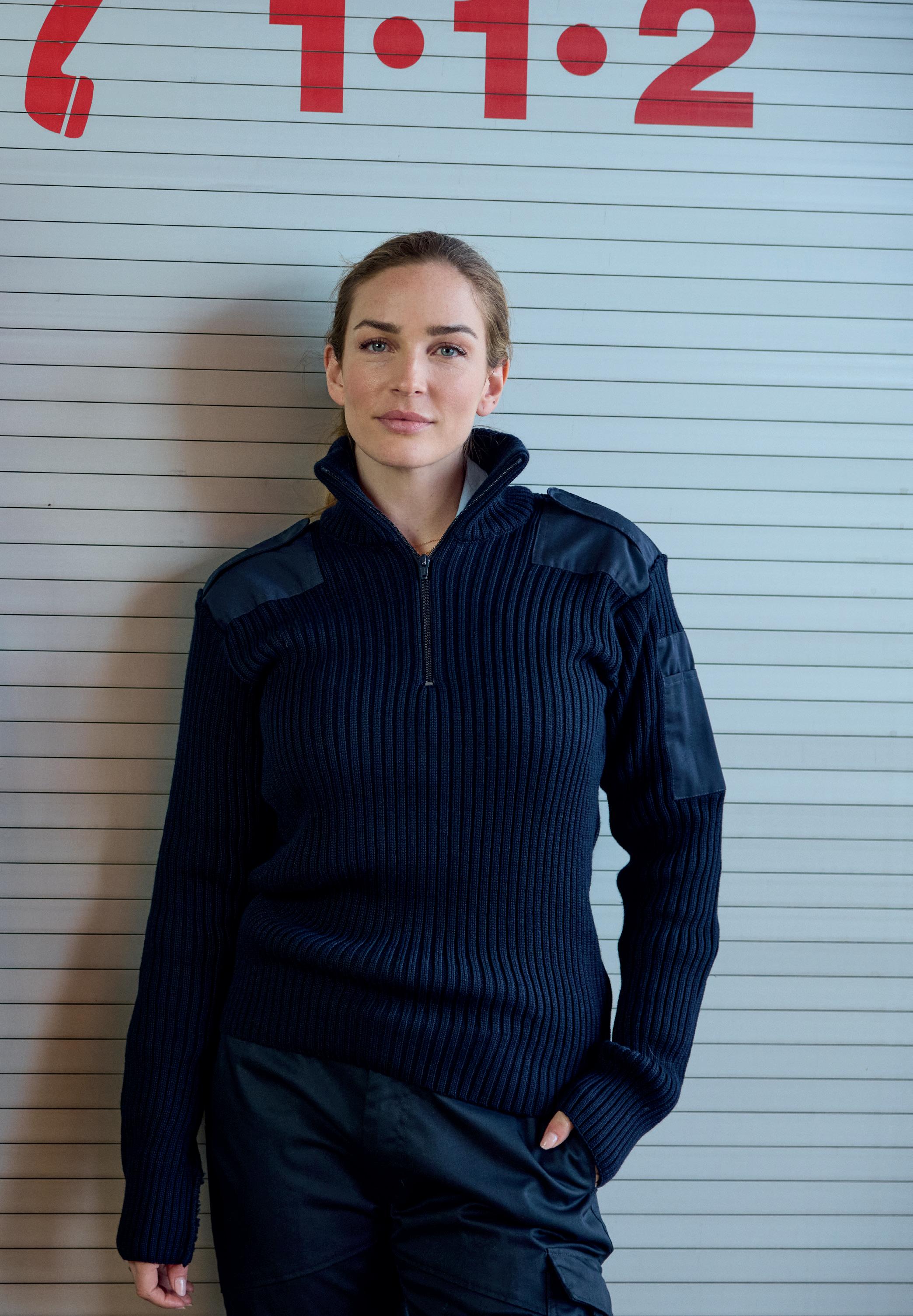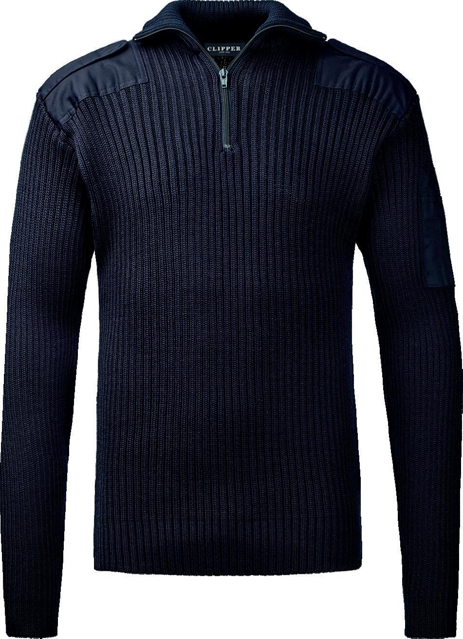 Made from a blend of wool and acrylic · Offers the natural benefits of wool, including moisture-wicking, temperature regulation and odour resistance · Acrylic provides durability and high shape retention · Knitted from a strong, heavy-duty yarn for enhanced durability · Heavier knit for structure and weight in an elasticated rib knit · Extremely durable and resistant to wear · High collar for a tight and snug fit · Extra-long cuffs for easy roll-up designed to be folded · Shoulder straps and twill reinforcement on shoulders and elbows · Pocket on left upper sleeve