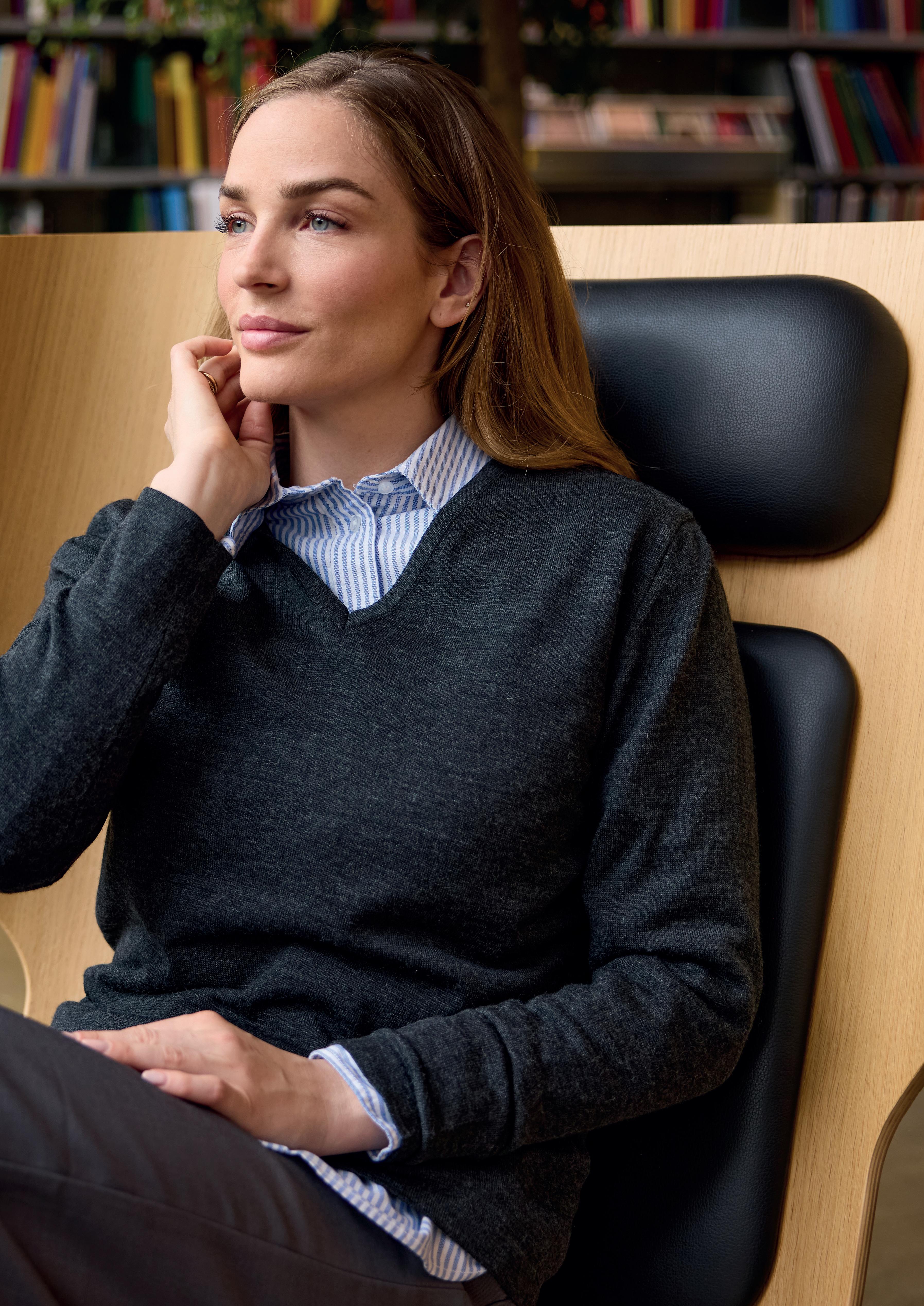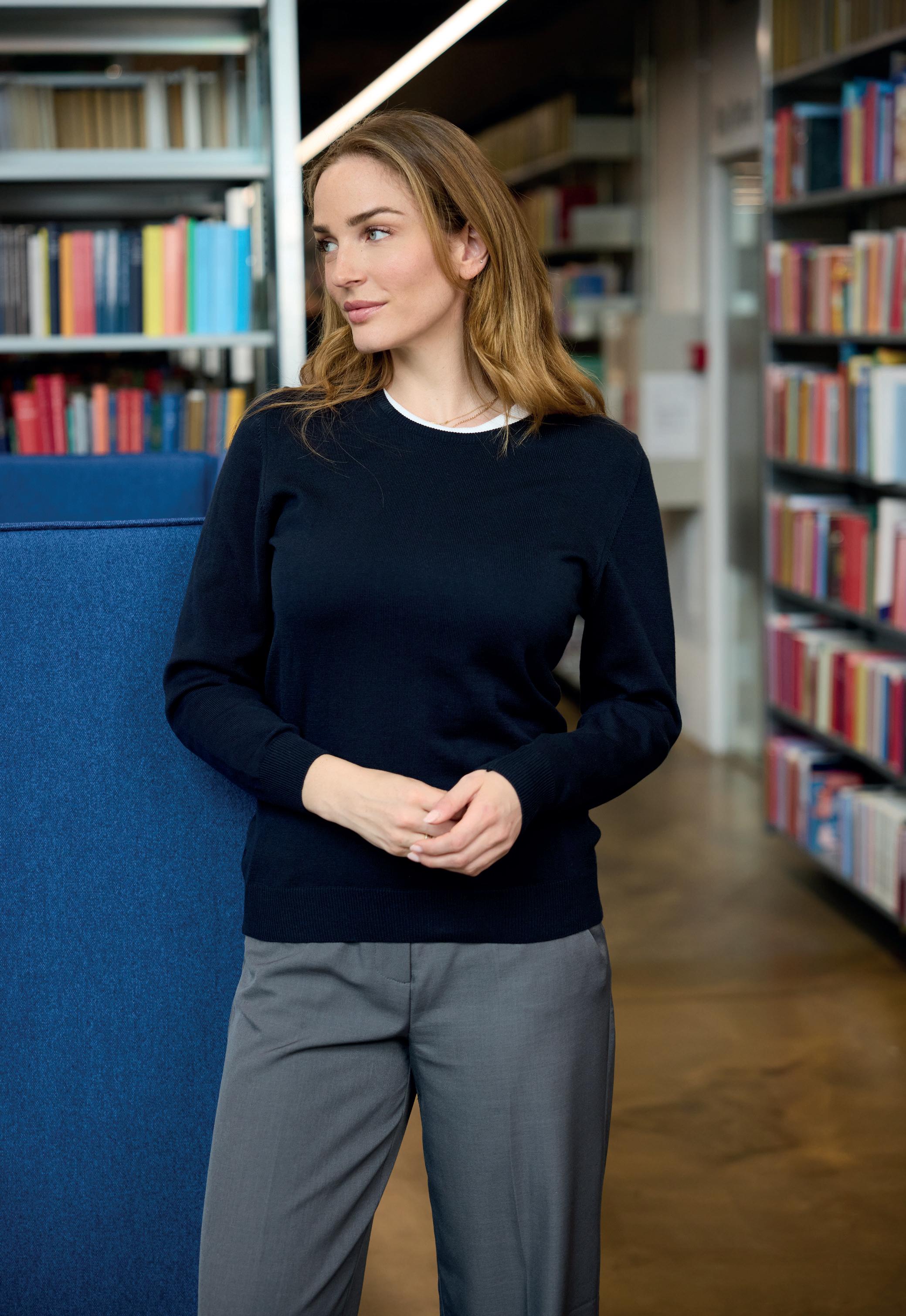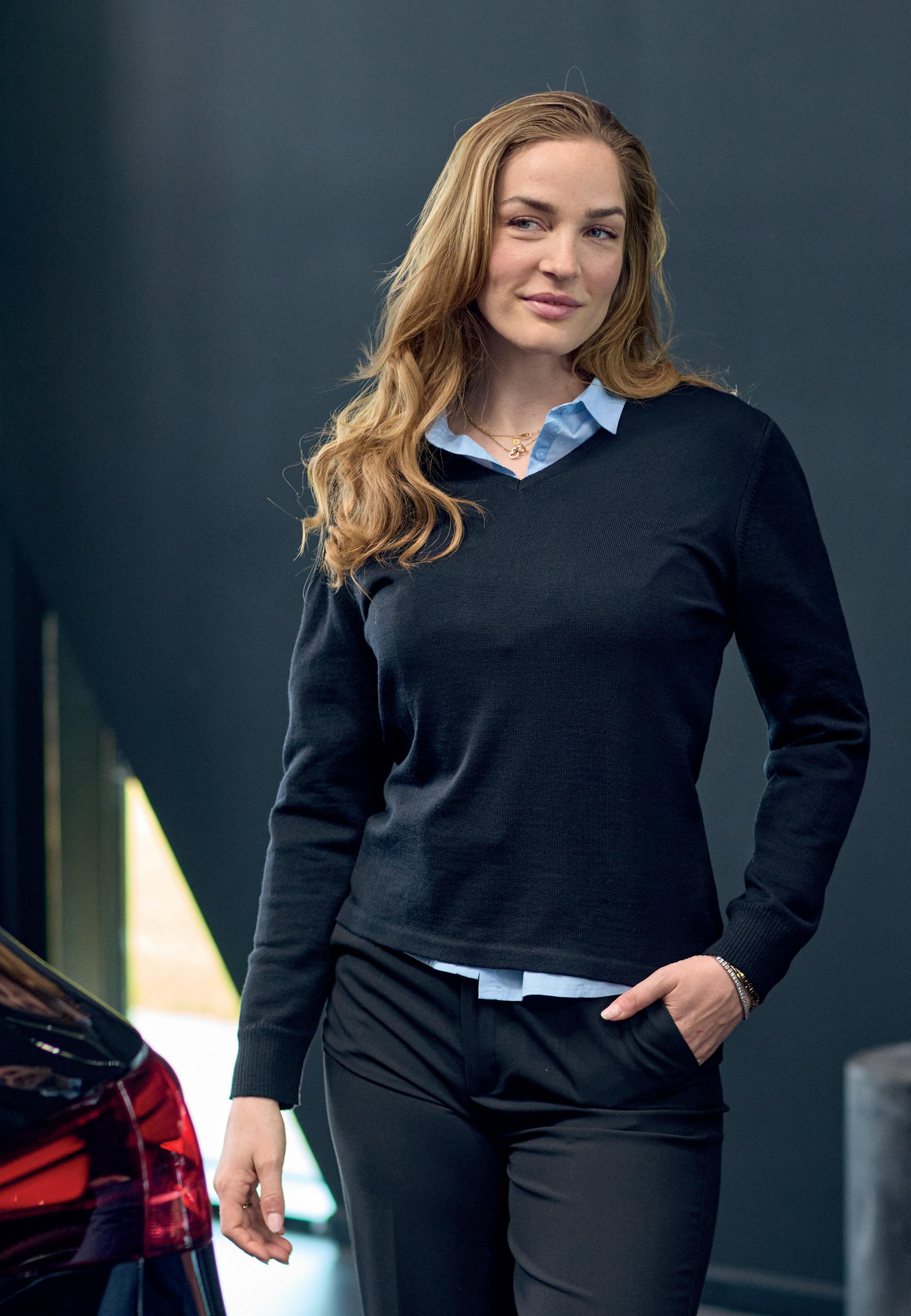 Made from a fine blend of thin merino wool and acrylic for a lightweight knit · Offers the natural benefits of wool, including moisture-wicking, temperature regulation and odour resistance · Acrylic provides durability and high shape retention · Widest collection with the largest range of styles and sizes · Mix and match pieces to create a uniform look across job functions · Extremely durable and resistant to wear · Tubular hem and cuffs for a classic and feminine look