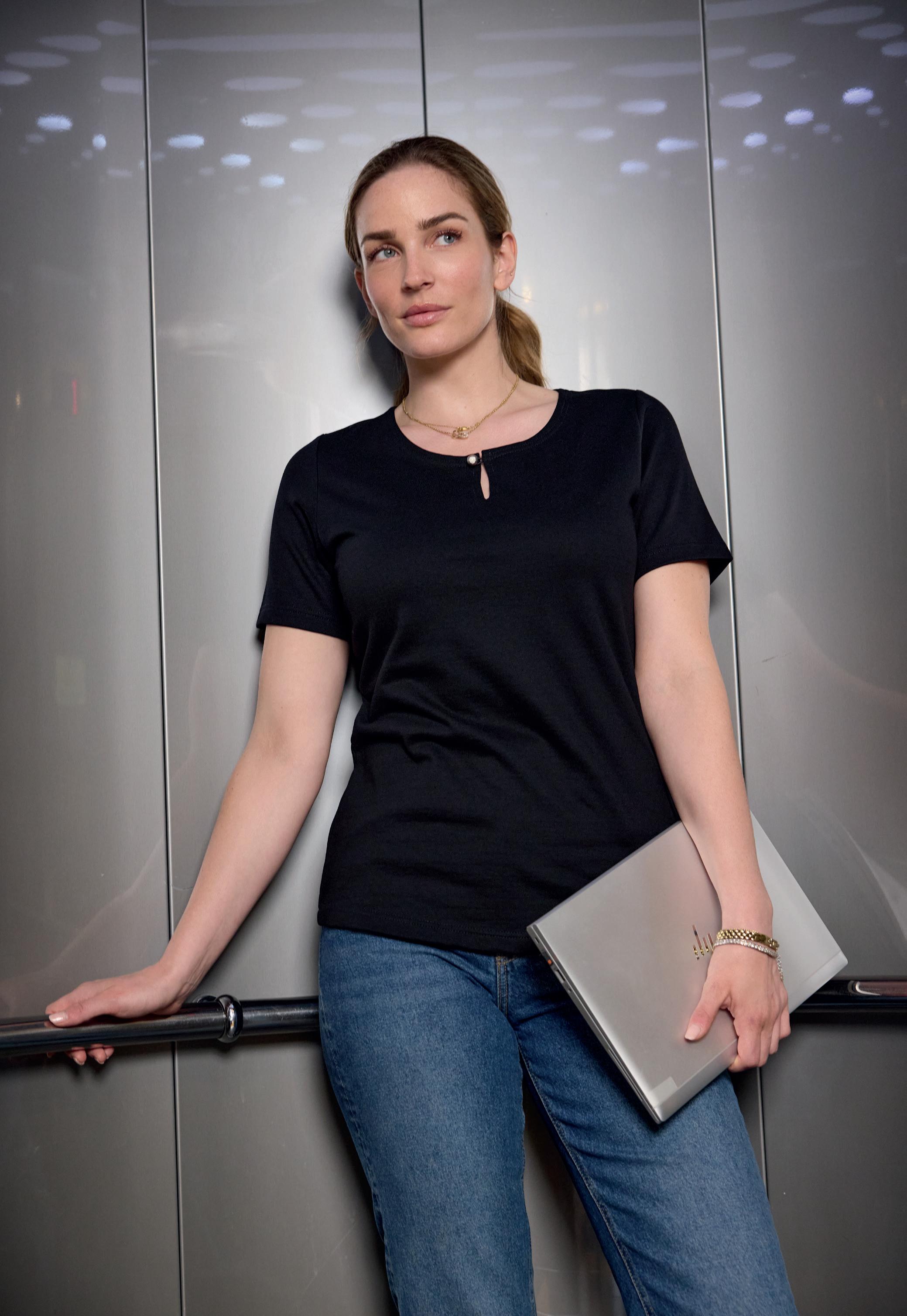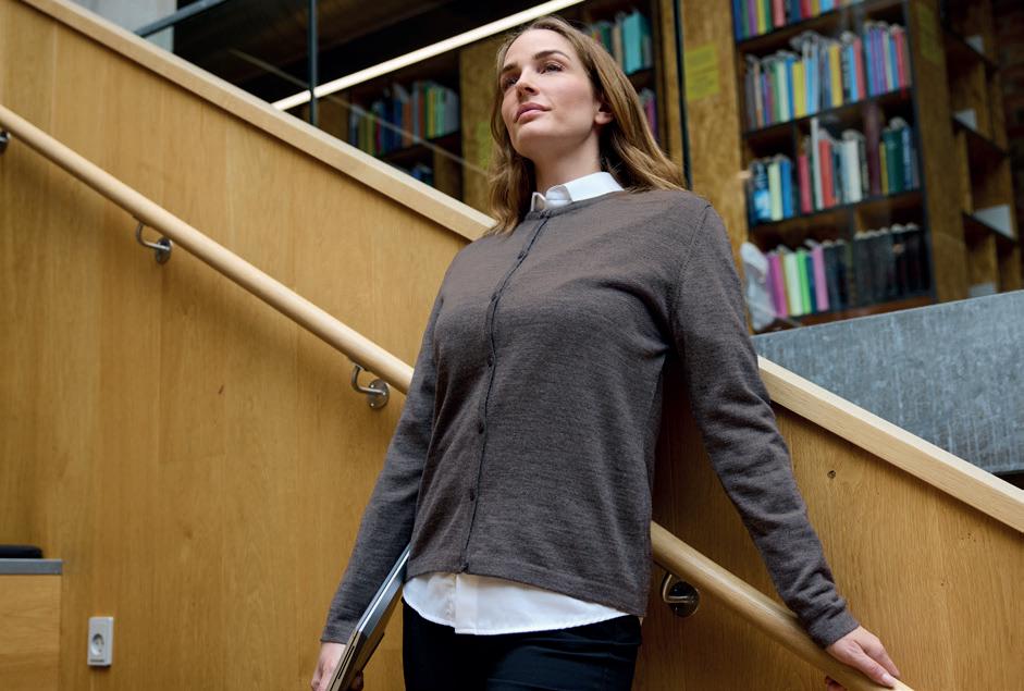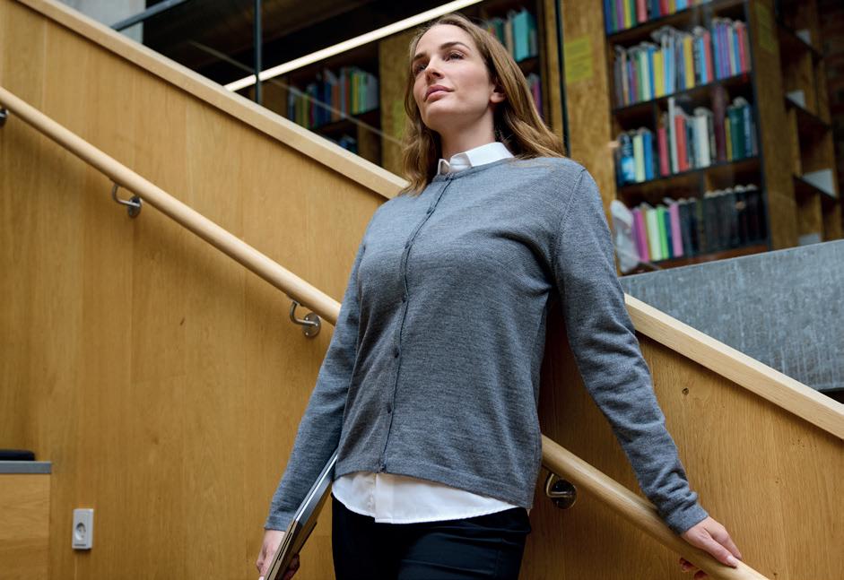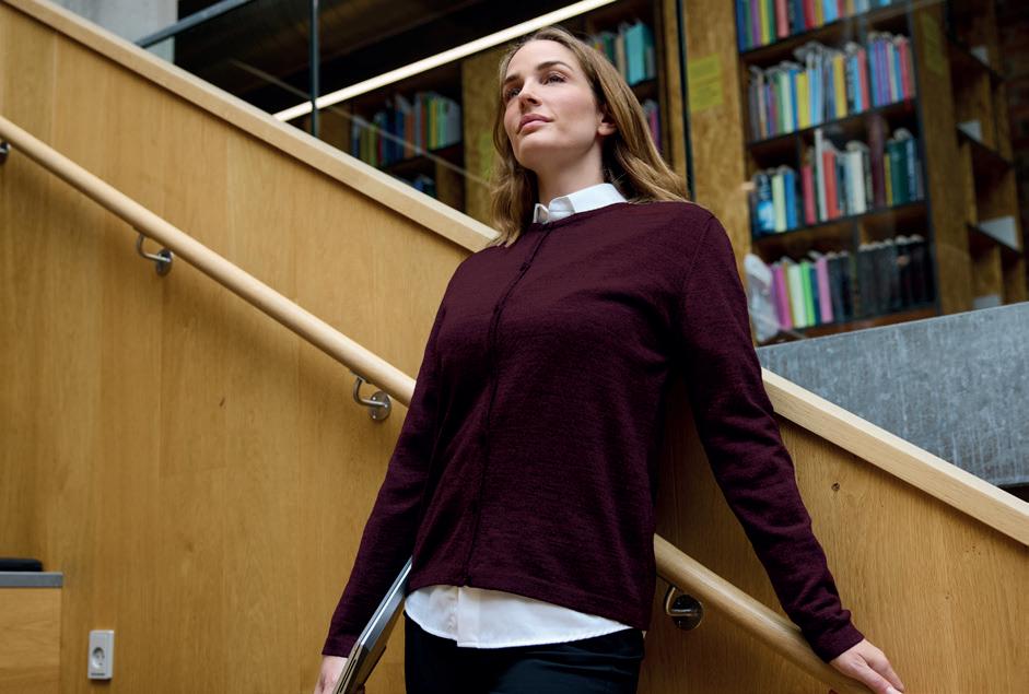 Made from a fine blend of thin merino wool and acrylic for a lightweight knit · Offers the natural benefits of wool, including moisture-wicking, temperature regulation and odour resistance · Acrylic provides durability and high shape retention · Widest collection with the largest range of styles and sizes · Mix and match pieces to create a uniform look across job functions · Extremely durable and resistant to wear · Tubular hem and cuffs for a classic and feminine look, buttons at placket