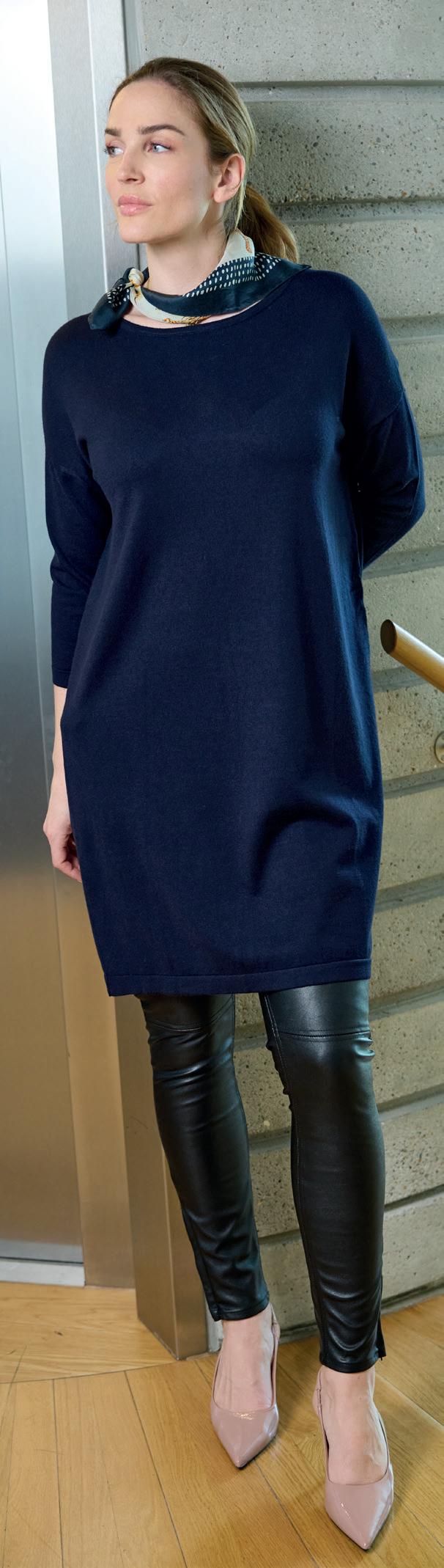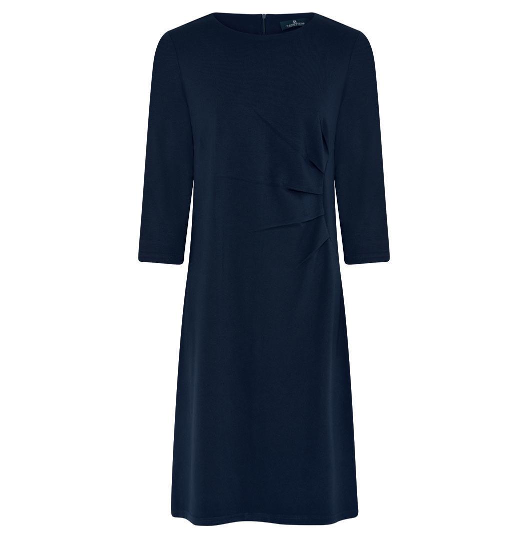 Made from a blend of viscose and polyamide for softness and strength · Viscose provides moisture-wicking properties and a smooth feel against the skin · Polyamide adds durability, strength and elasticity for long-lasting wear · Combines the best of both fibers for a lightweight, breathable fabric · Luxuriously soft hand feel for a premium, comfortable wear · Elastic construction ensures a flexible fit and flattering silhouette · Provides freedom of movement, ideal for everyday wear · Knee length dress with ¾ sleeves and boat neckline · Tubular hem for a classic and feminine look