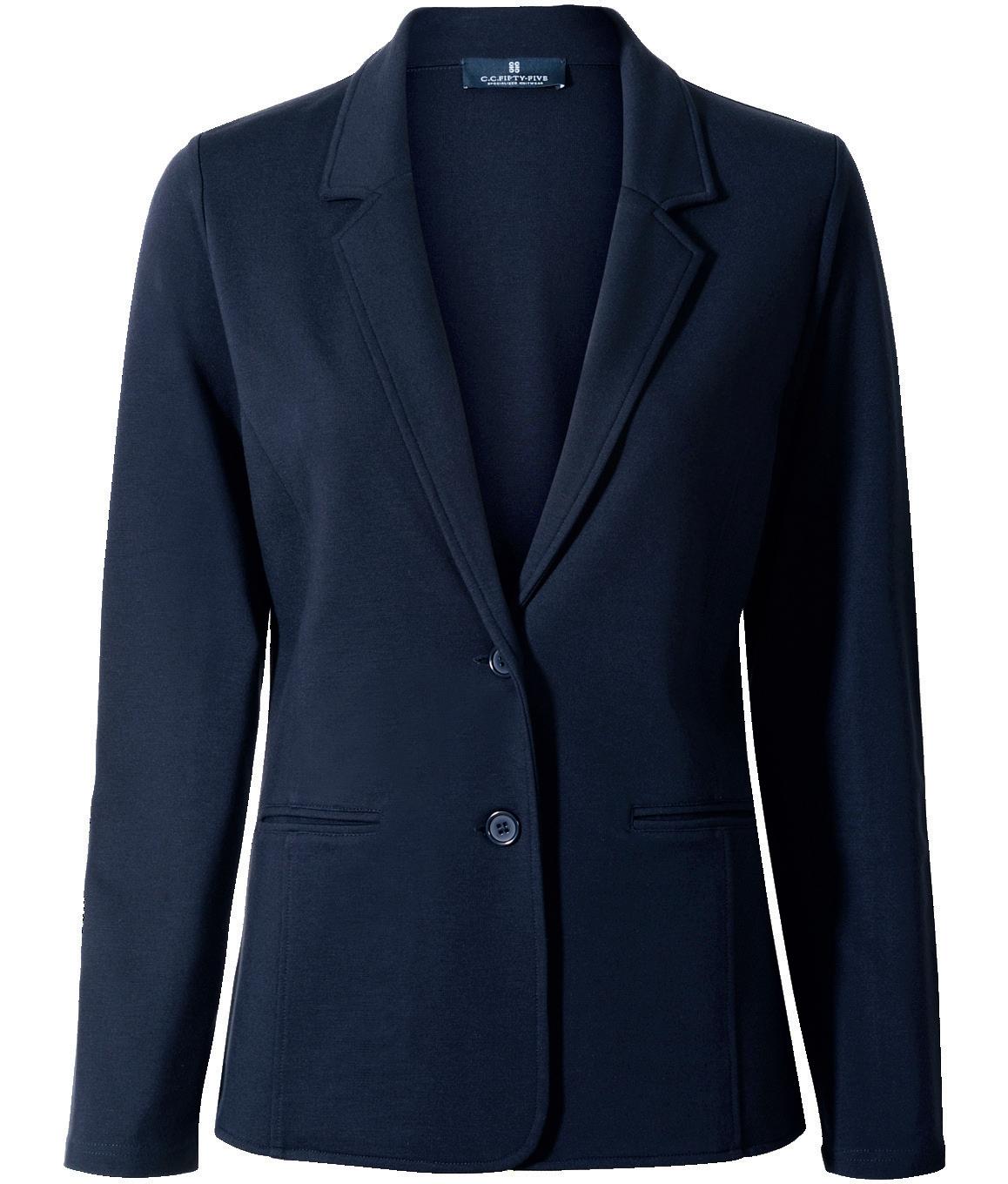 Made from a blend of viscose and polyamide with elastane · Viscose provides moisture-wicking properties and a smooth feel against the skin · Polyamide adds durability, strength and high shape retention · Elastane for flexibility, freedom of movement without feeling restricted · Luxuriously soft hand feel for a premium, comfortable wear · Extremely durable and resistant to wear · Two button blazer with lapel, two front pockets · Unlined · Modern fit that tapers at the chest and waist for an elegant silhouette