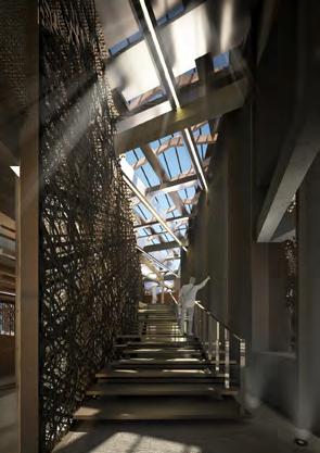 Hole on the facde design base on the zoning inside to respond the activity that don’t need sunlight as the same quality and also to let people outside can see the art techonology easily.