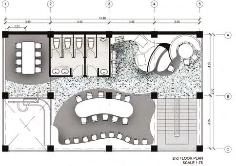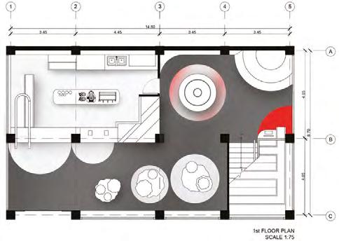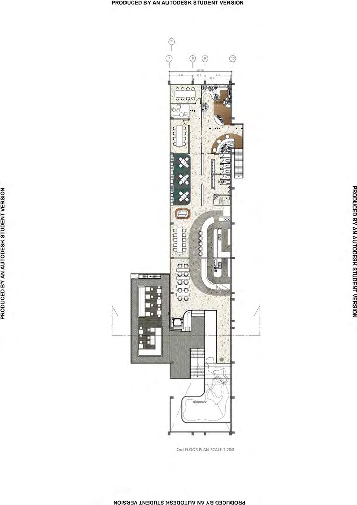 Mezzanine seating on the moveable part can be use for relaxing for workshop participant / extra seating whenmove next to the cafe