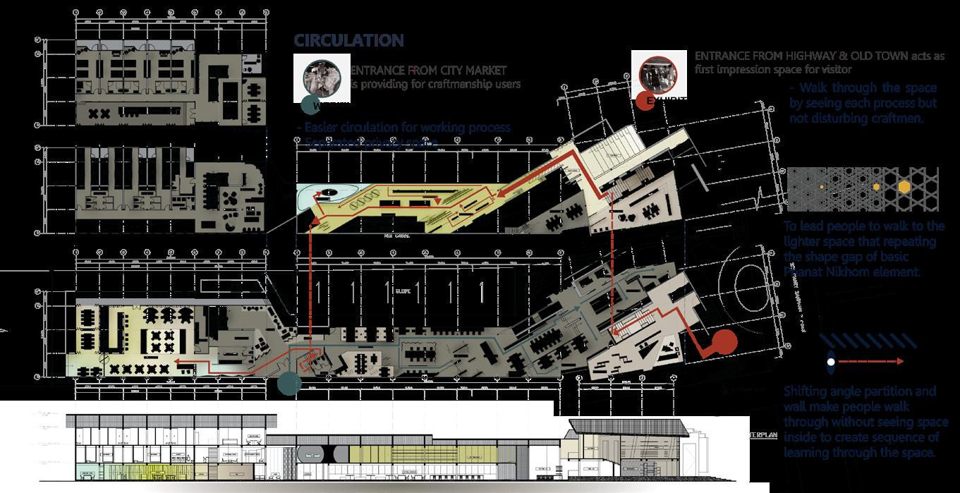 This project focuses on revitalizing the old city library of Phanat Nikhom, alongside a common community building and adjacent shop houses. Central to the project is the exploration of Phanat Nikhom’s rich wickerwork heritage, known for its distinctive craftsmanship and unique qualities. Our aim is to transform these spaces into dynamic hubs where people can study, experiment, and immerse themselves in the art of wickerwork. The concept integrates the story of wickerwork, inviting visitors to engage with and contribute to this cultural legacy. Through thoughtful redesign, we aim to reconnect the community with its cultural roots, fostering a renewed appreciation