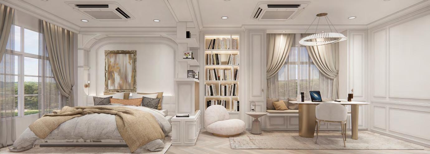 The renovation of the house on Permsin Road with a focus on timeless luxury , incorporating elegant curves and cornices. Our aim is to blend sophistication with functionality. For daughter’s bedroom, we’re creating a versatile area for both quiet reading and studying with friends, ensuring her private relaxation isn’t disturbed. The guest bedroom will maintain its existing furniture while receiving a luxurious upgrade to match the overall house theme. Our goal is to craft a sophisticated and inviting space for both family and guests.