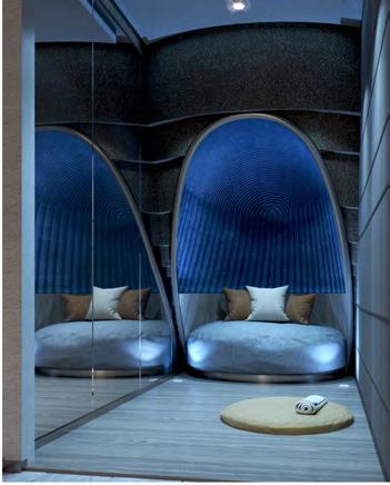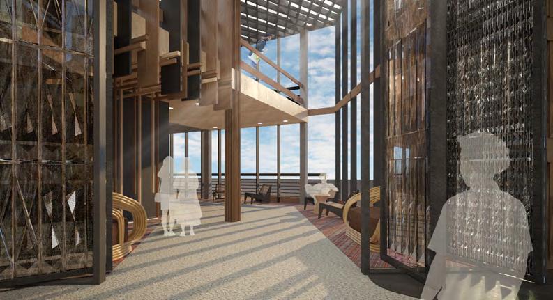Concept of the ‘Ozone bubble’ is tailored specifically to the tower space, emphasizing universal design principles. I’ve utilized the bubble’s essence— its colors and evocative qualities—to craft distinct spatial sequences. This includes features like shadow-casting walls, sweeping lines that connect spaces, and a graduated color palette throughout. Each element enhances the space with unique characteristics, creating an environment that’s both functional and visually captivating.