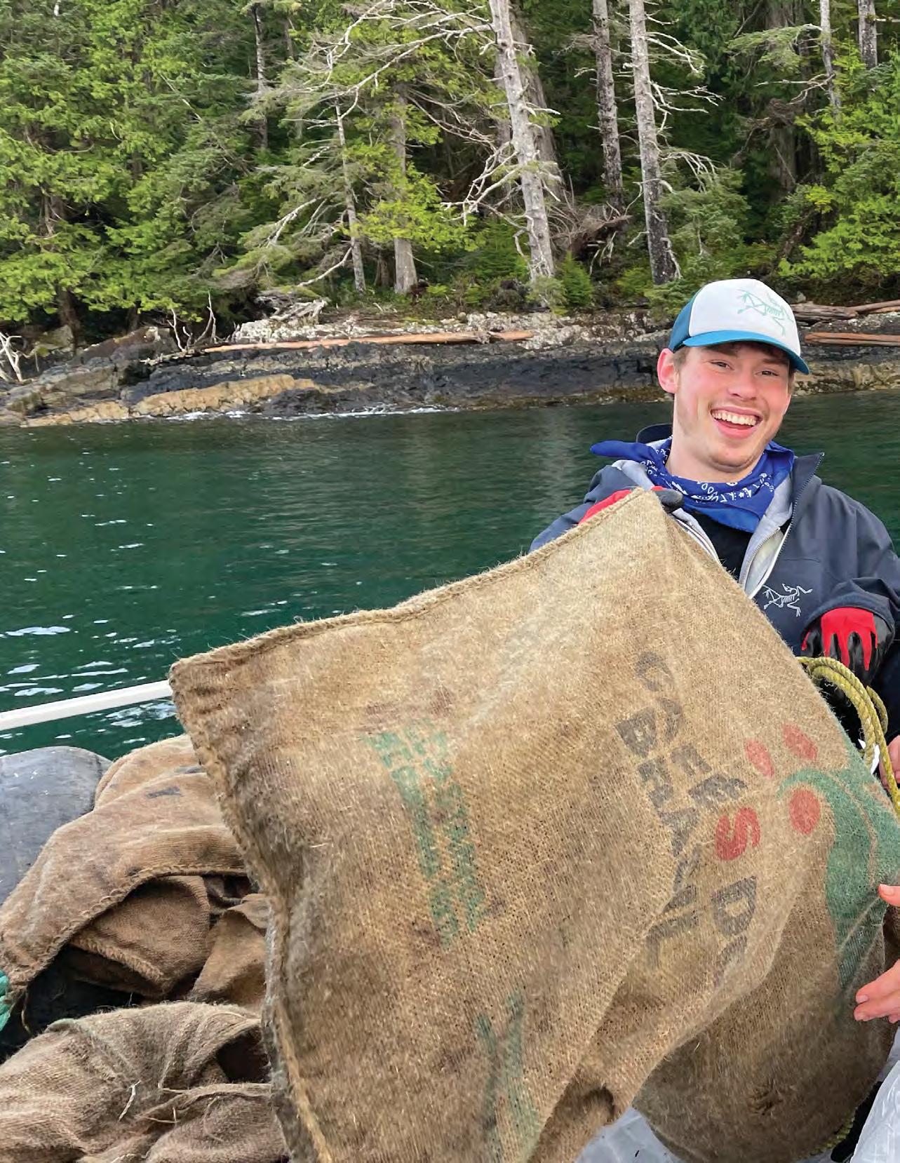 Haida Style Expeditions team included eight youth under 30 years of age from Haida Gwaii: Allegra van Heek, Roan Collison, Anton Amero, Evan White, Noah Borrowman, Linden McDiarmid, Elin Hilgemann, and William Gravelle. Also part of the team were Shawn Cowpar, Robert Russ, James Williams, Jeanette Yaroshuk, and myself. L ong-term friendships spring from shared labour and accommodations over a cold and stormy week. We hope that 200 tonnes of marine debris will be removed from the shorelines of Haida territory.