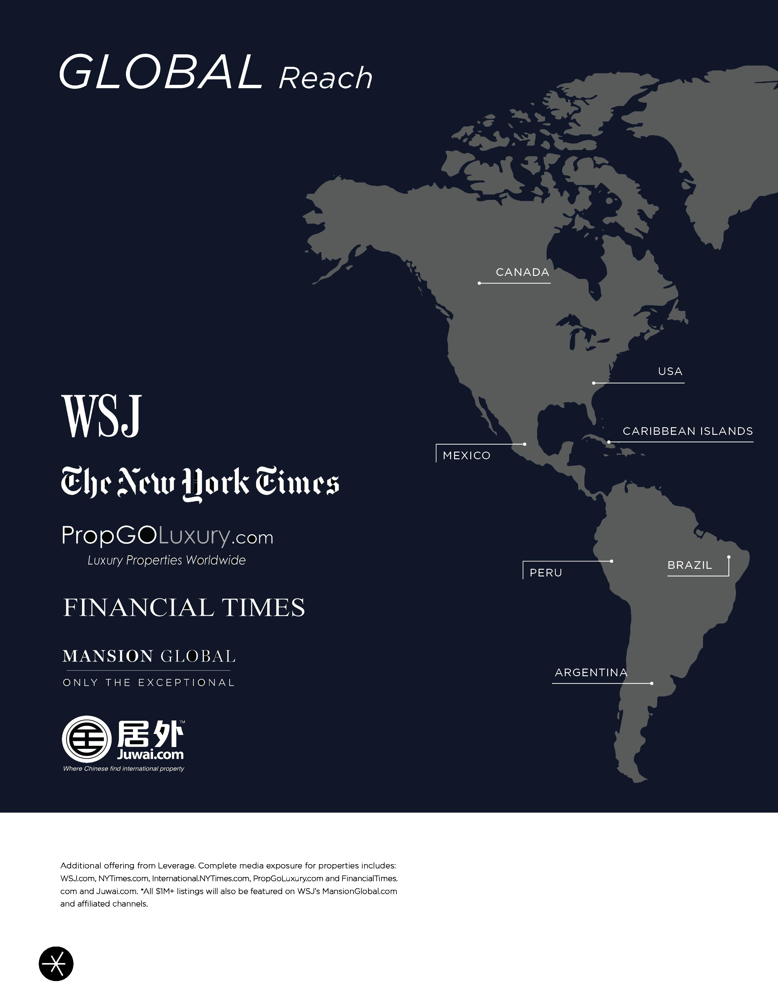 With Leverage, your agent is allied with top producing real estate professionals and the most respected media outlets worldwide so that your property can receive maximum exposure to an international audience.