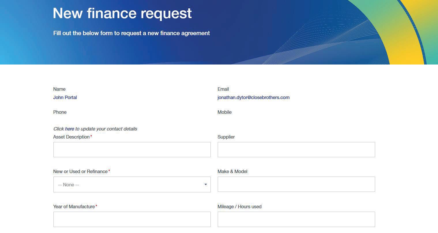 You can fill out a short form to request new finance through the portal. The form will pre-populate some of your details and you can attach any documents to support your request. Once submitted, your account manager and local customer relationship team will receive a notification of your request.