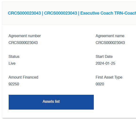 You can view all agreements you have had with us. These include the agreement number, name, term, status, start and end date, and the amount financed, plus a description of associated assets: