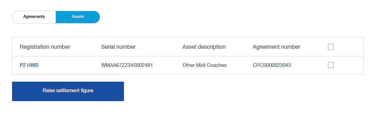 From here you can select any asset you wish or even multiple assets, then select ‘Raise settlement figure’.