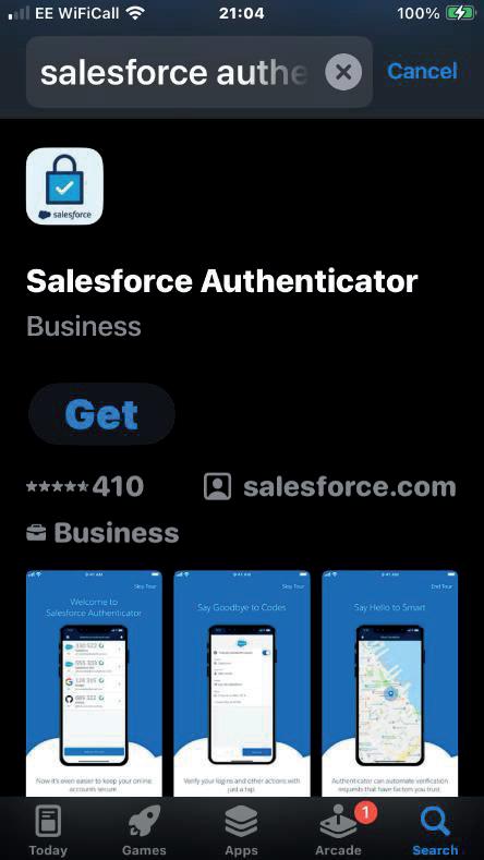 You will also need to download the Salesforce Authenticator app. You will need this every time you log in to the portal. The Salesforce Authenticator app can be found in the Apple App store and Google Play store.