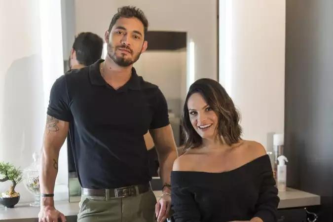 O cabeleireiro Anderson Nunes diz que o corte long bob aliado ao cabelo no estilo gold brunette valorizou ainda mais a beleza natural da maquiadora Fabiana Nardy: "O corte bob em camadas e com franja é uma forte tendência para este ano" (foto: Uarlen Valério/Encontro)