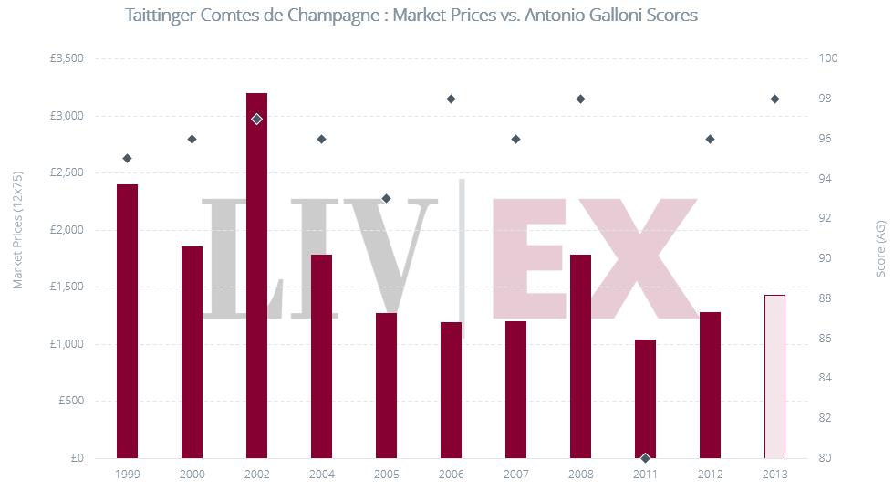 I am delighted to offer the latest vintage of Taittinger’s Comtes de Champagne, a true investment gem and with today’s pricing in mind a firm STRONG BUY recommendation given is very high score.
