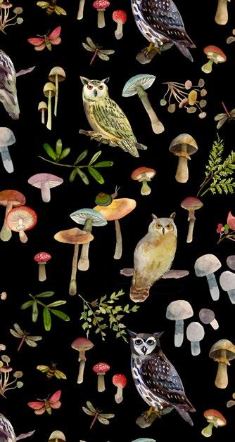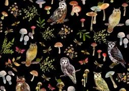 Fabric 1: Black Digital Owls & Mushrooms Y4075-3 1 ¾ yds 2 bolts 3 bolts