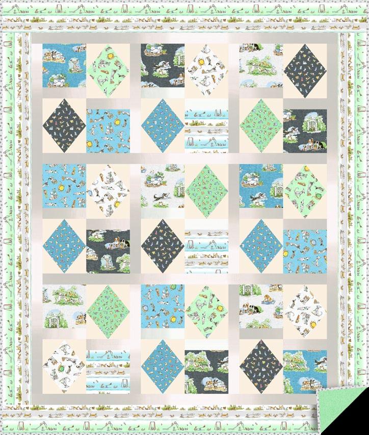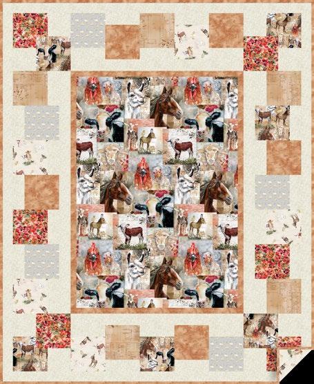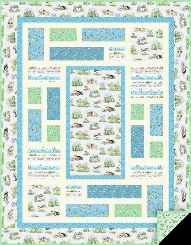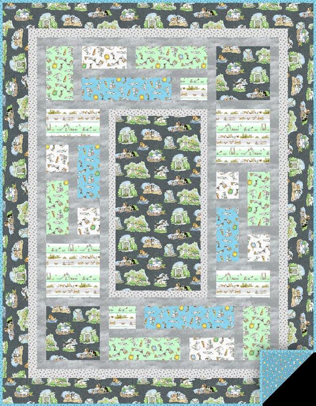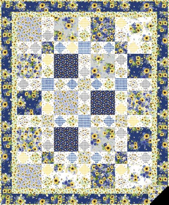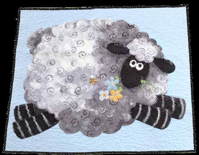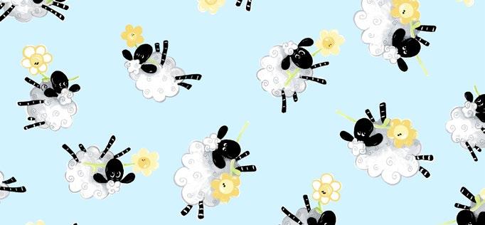 Fabrics 1 Kit 10 Kits 20 Kits Fabric 1: Light Blue Lewe Quilt Panel SB20350-710 1 yard 1 bolt 2 bolts Fabric 2: Medium Grey Squiggle Basic SB20053-170 (includes binding) ⅔ yard 1 bolt 1 bolt Fabric 3: White Squiggle SB20053-101 1 ⅛ yards 1 bolt 2 bolts Fabric 4: Light Blue Susy Bees SB20197-710 ⅜ yard 1 bolt 1 bolt Fabric 5: Yellow Tonal Dot SB20157-310 ¼ yard 1 bolt 1 bolt Fabric 6: Light Blue Tonal Dot SB20157-710 ½ yard 1 bolt 1 bolt Fabric 7: Light Green Tonal Dot SB20157-810 ⅓ yard 1 bolt 1 bolt Backing: Medium Grey Leaping Sheep SB20052A-170 3 ½ yards 3 bolts 5 bolts Pattern by Terri Butler of Mama Said Sew Designed Especially for Susybee • 47" x 57"