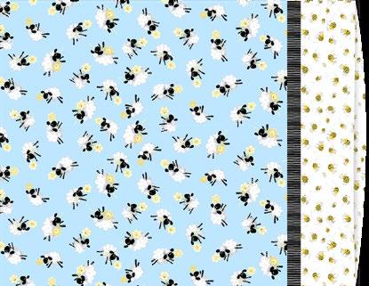 * Note: As a coordinate to Lal the Lamb group, this fabric features pink flowers. Green field, sheep & yellow bees match colors in either Lal or Lewe fabric lines.