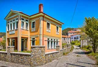 Traditional settlement of Emporio: Hidden in the hillside of Mouriki, among dense chestnut trees, it impresses the visitor with its picturesque square, its well preserved houses of the macedonian architecture, traditional fountains and the Church of Saint Menas with its Genovese tower and its Byzantine fortification.