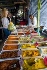 τοπικό κρασί και τρώγοντας παραδοσιακή φασολάδα.