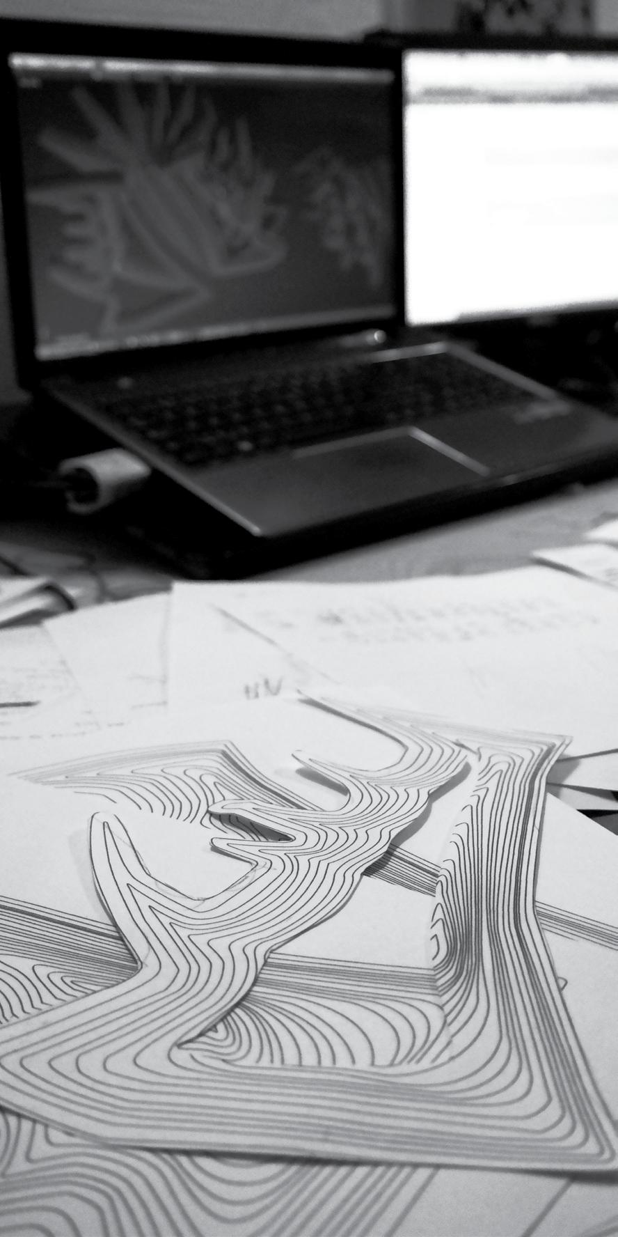 Kształtowanie, tworzenie, rzeźbienie. Wycinanie, projektowanie, klejenie. Drogi na skróty. Drogi do celu. Szerokie bezdroża wąskie ścieżki. Kształty, które nabierają wymiaru dopiero po usunięciu zbędnych elementów.