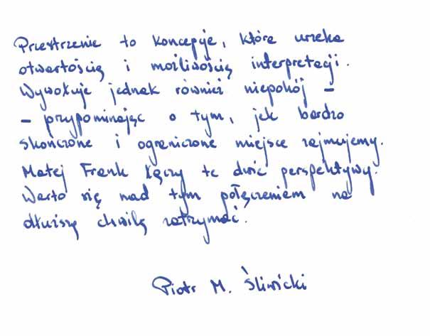 ERGO Hestia jest w pracy Matěja Franka kształtem, który rośnie proporcjonalnie, stale, co roku. Odciska swój ślad nie tylko w przestrzeni, ale również w czasie. Artysta, wycinając w kartonowym, drewnianym, a później stalowym prototypie ślad idei, kształtuje przestrzeń. My również staramy się ją kształtować. Warsztat jest nieco inny, ale troska o szczegół, praca z koncepcją, a także twórcze błądzenie – mogą być takie same. Dzieło istnieje samo dla siebie, ale ożywa – dopiero w kontakcie z widzem. Kluczowe jest więc nie tylko samo stworzenie przestrzeni, ale również troska o to, by zaprosić do niej, zachęcić do jej odwiedzenia, widzów. A może partnerów? Może krytyków? Dzieło artysty może istnieć dla jednego widza. Może istnieć samo dla siebie.
