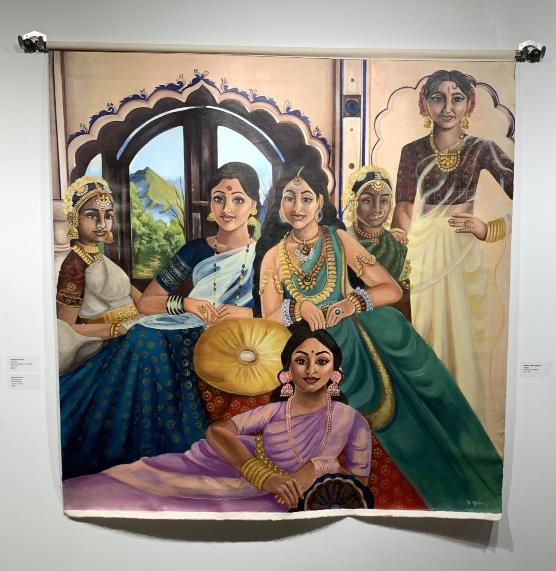 "Azhagi" and the other pieces I have been fortunate enough to create have all been done in acrylics and follow the theme of exploring what it means to be a Tamil woman. They pay respect to the many ancestors who came before me while seeking to find the power that they displayed even in the face of adversity and chauvinist ideology. Through my art, I create visions of a world that is void of unrealistic expectations and hierarchies practiced through constructs such as race, gender, and class.