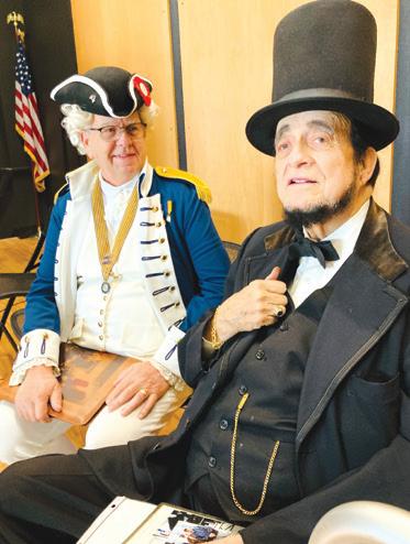 The Senior Center gets a visit from America's past: George Washington played by Larry Duba and Abraham Lincoln played by Wayne Scott. Both gave a short dissertation on their history and are featured cutting the cake at the Senior Center