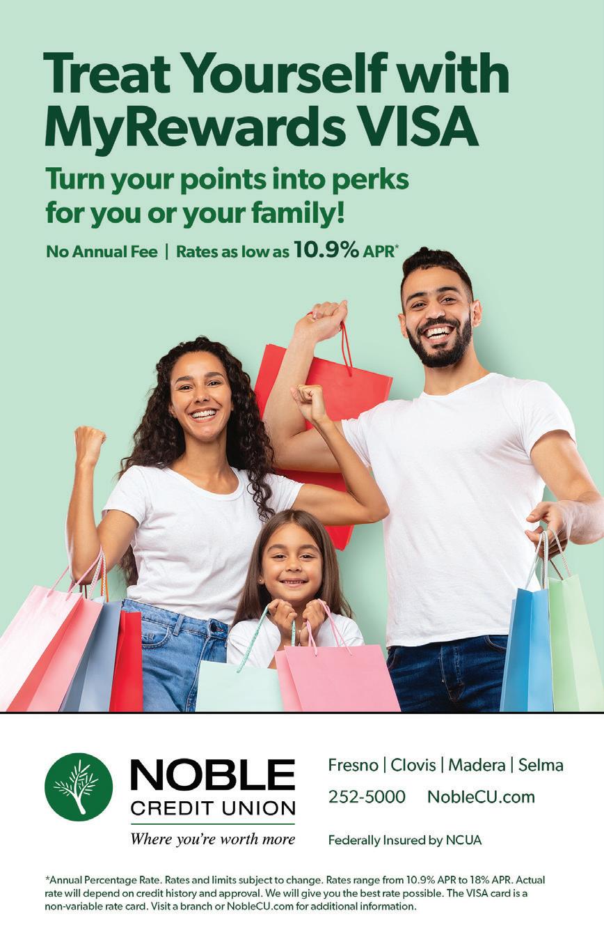 Noble Credit Union, voted the 2024 best credit union in Central California by the Business Journal, offers offer members full access to a wide range of financial education and services, including low rate auto loans, MyRewards Visa credit card, mortgage and equity loans, online and mobile banking, and more.