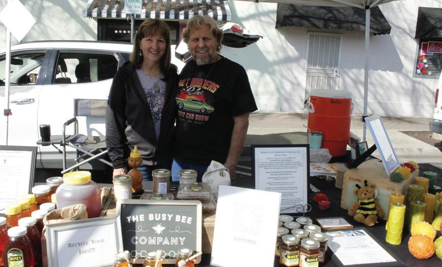 and microgreens. At the other, homemade soaps and handcrafted beard care, sourdough bread, and jewelry. If you’re not one for crowds, this is the market for you. John and Lynette Ballis, owners of Busy Bees Honey Farm out of Sanger say “The market’s a little different on Saturdays– it’s much smaller.”