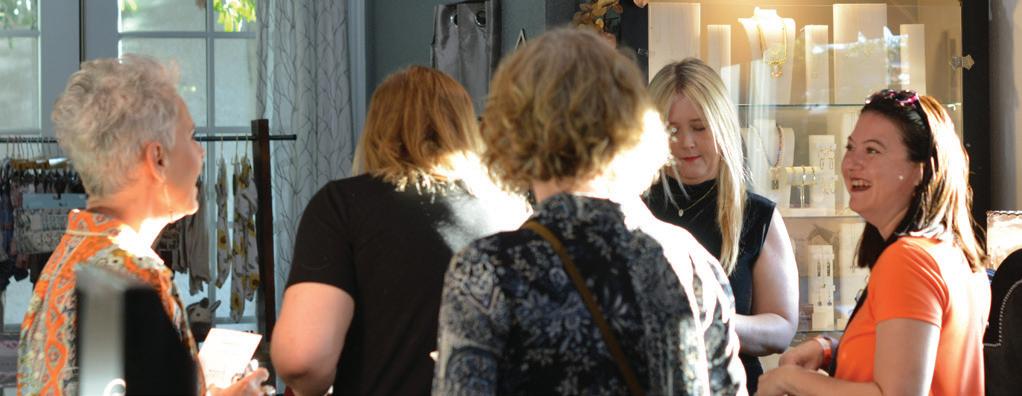 the Boisset Collection, which blended seamlessly into the boutique’s romantic atmosphere. Shoppers and wine lovers alike were treated to rich notes of this California wine, savoring each sip as they admired the floral arrangements. For those looking to mix things up, Oishi Sushi & Grill offered Mad Duck craft beer, adding a bold, refreshing twist to the evening. The hoppy aroma of Mad Duck’s brews paired perfectly with the vibrant energy of the sushi spot, giving attendees a well-balanced tasting experience. Meanwhile, Bauble & Thread was all about elegance. The boutique offered pours from Francis Coppola, whose luxurious wines brought a touch of sophistication, making it a must-stop for those with a taste for something refined.