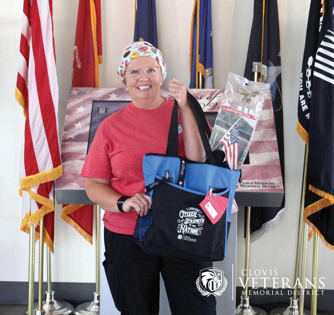 seemed well worth it, as well. The bag, only one of several gifts she received, had the official logo of the Clovis Veterans Memorial District, along with their key slogan “Every good citizen adds to the strength of our nation.”
