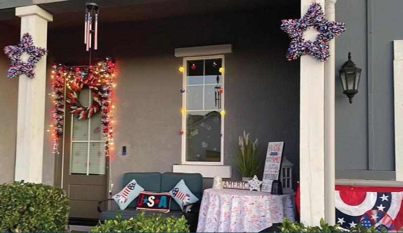 Pierce’s front porch adorned with various decorations was certainly patriotic.