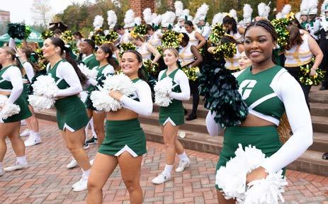 Cheer Nation performs with the Pride of Niner Nation Marching Band during Niner Nation Homecoming Week at The 49th Acre in October.