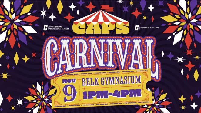 The Christine F. Price Counseling and Psychological Services hosted a variety of games, inflatables and cotton candy for the CAPS Carnival in November. The event was created to promote the importance of taking care of mental health through activities and social connection while providing an opportunity for students to de-stress through play.