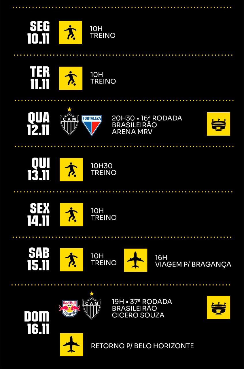 • DM do Galo: Lyanco (tornozelo esquerdo), Tomás Cuello (tornozelo esquerdo), Caio Maia (joelho direito) e Júnior Santos (coxa direita).