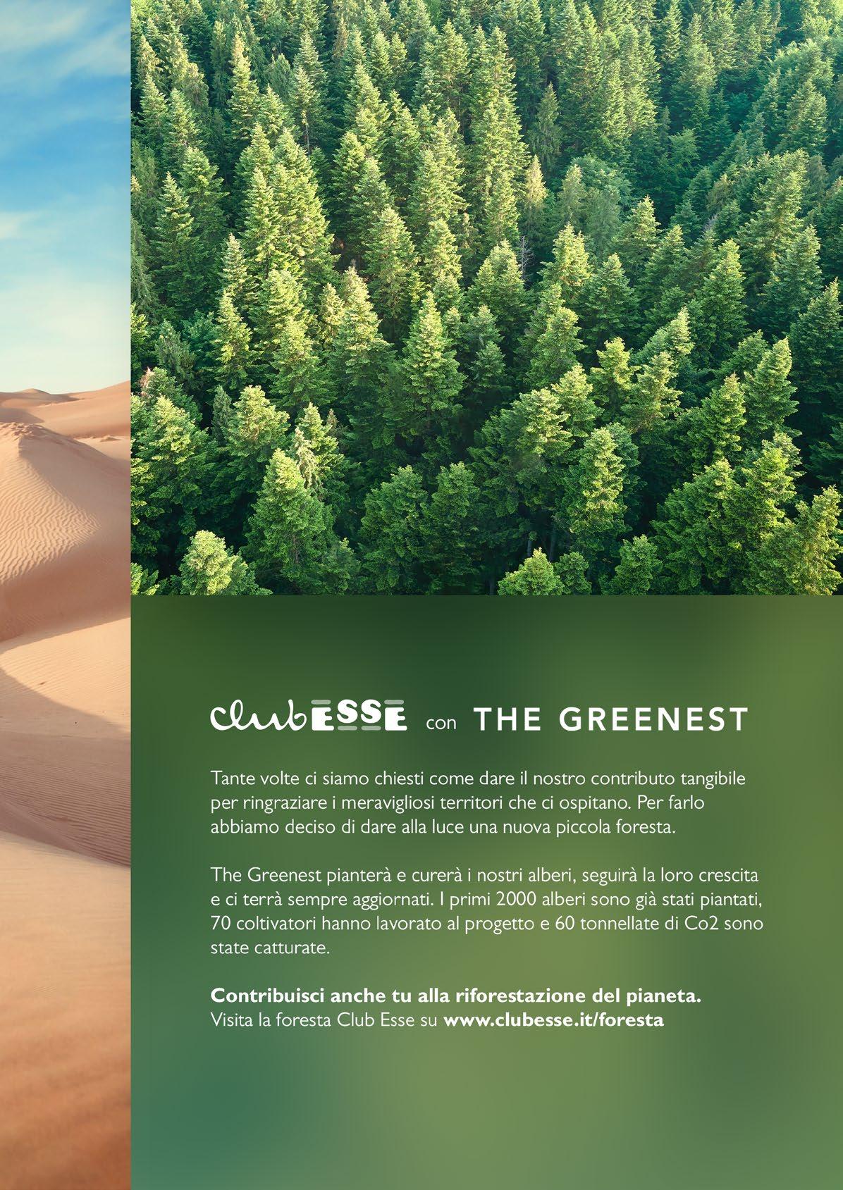 Sai a che cosa corrisponde la esse di Club Esse? Al sole dell’estate. Al sorriso di chi si prende cura di te. Alla spensieratezza, alle spiagge e allo splash del primo tuffo. Al superpotere di trasformare la fine dei tuoi impegni nell’inizio dei tuoi sogni. In ogni Club Esse proverai i sapori del territorio, sarai protagonista di eventi emozionanti e ammirerai luoghi spettacolari. Ma sarà solo al momento di ripartire per casa che scoprirai un altro significato per questa Esse, il più importante, quello che le avrai dato tu.