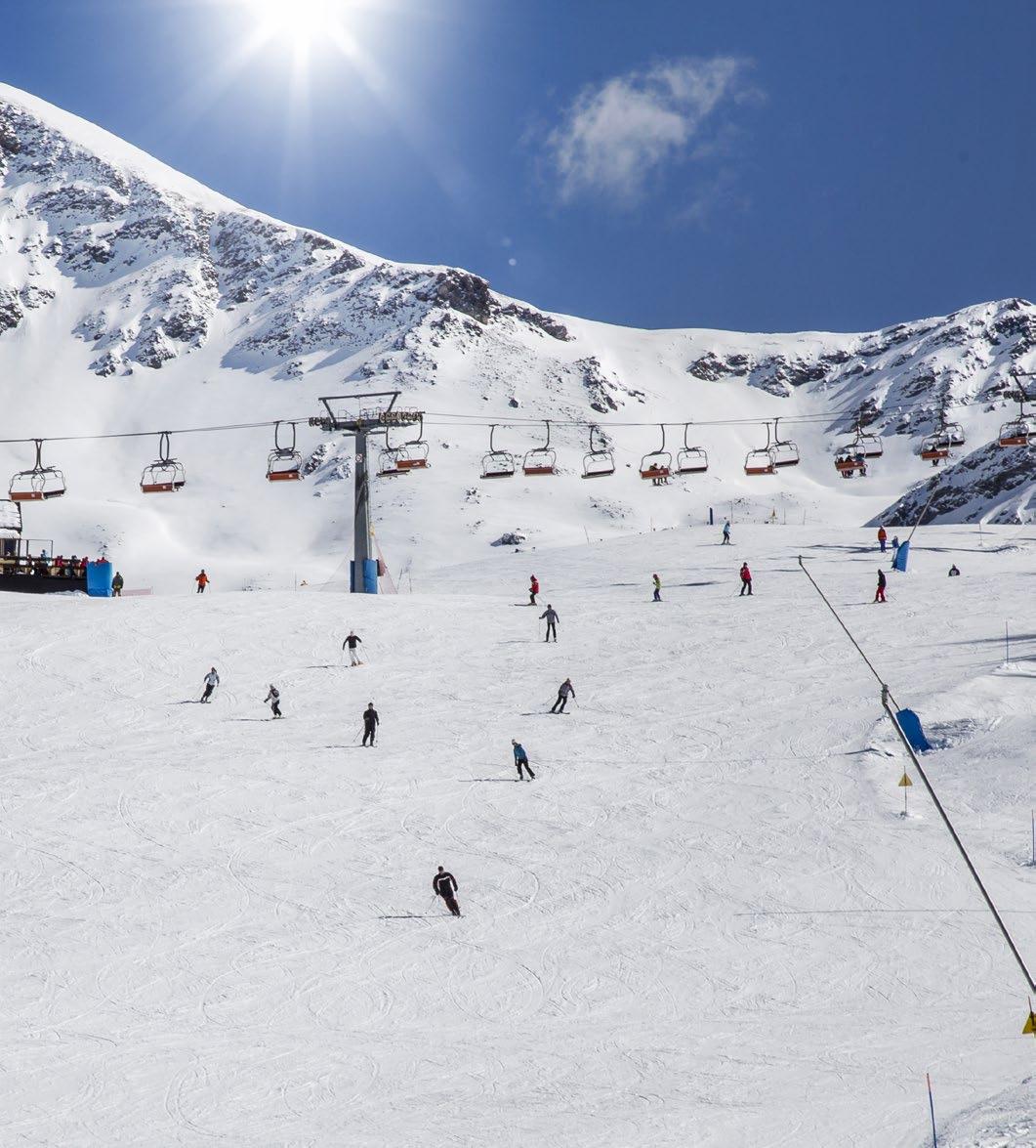 In front of you rise the majestic peaks of Mont Blanc and the Matterhorn,all around 70 km of ski slopes.