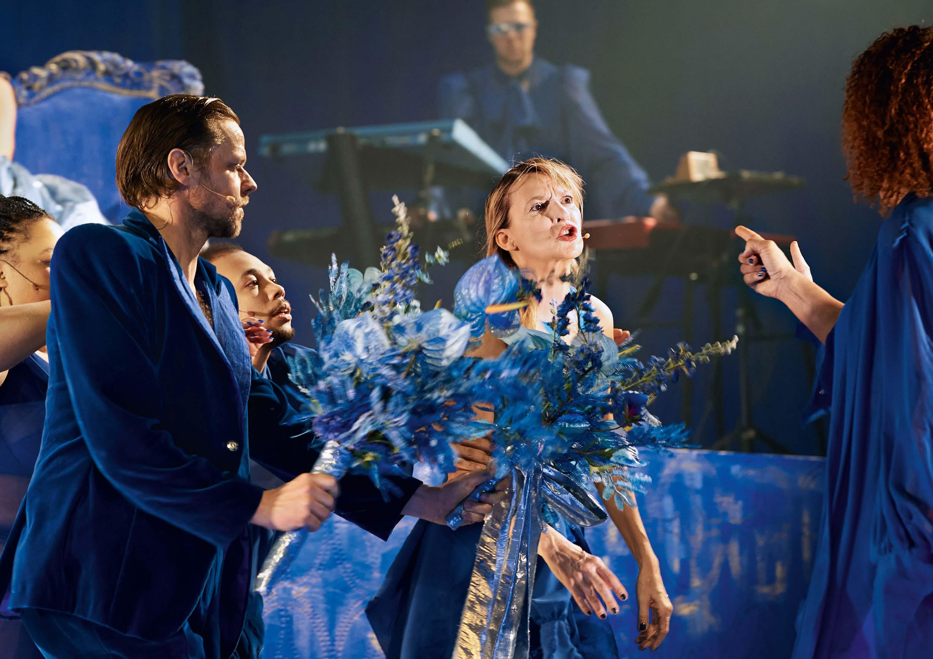 CONCEPT, REGIE: GUY WEIZMAN | CAST: KARIMA EL FILLALI, ANJA HERDEN, SANNE DEN HARTOGH, SARAH JANNEH, NICOLAS MATTHEWS, BIEN DE MOOR, IGOR PODSIADLY, KATHERINA SATTLER, JÉSULA TOUSSAINT VISSER LIVE MUZIEK: JOCHEM BRAAT, KARIMA EL FILLALI, ORIOL MARÈS, NIELS MELIEFSTE WRITERS’ ROOM: ANTIGONE AKGÜN, RASIT ELIBOL, MOHAMEDOU OULD SLAHI, RIK VAN DEN BOS CHOREOGRAFIE: RONI HAVER COMPOSITIE: LORADENIZ, KARIMA EL FILLALI DRAMATURGIE EN PLOT: FRIEDERIKE SCHUBERT DECOR: ASCON DE NIJS KOSTUUMS: MAISON THE FAUX | LICHTONTWERP: MAARTEN VAN ROSSEM | GELUIDSONTWERP: PETER ZWART MUZIKALE DRAMATURGIE: DAVID DRAMM, FEDOR TEUNISSE VERTALING: FRIEDERIKE SCHUBERT, MOHAMEDOU OULD SLAHI HOUBEINI, LUDY GOLSTEIN, ASKA HAYAKAWA | REGIE ASSISTENT: LUDY GOLSTEIN, ASKA HAYAKAWA (STAGIAIR), PIA KRÖLL MET LIVEMUZIEK DOOR ASKO|SCHÖNBERG EN SLAGWERK DEN HAAG