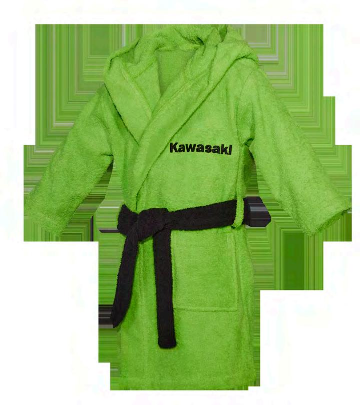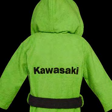 RRP £38.95 Kids bathrobe in 100% cotton. The ideal attire for after bath time Hooded Bathrobe with pockets Green with black belt Embroidered with Kawasaki logo 100% Cotton Terry Available in 4 sizes – 92cm / 2yrs, 104cm / 4yrs, 116cm / 6yrs & 128cm / 8yrs Are you sitting comfortably? You could be with the coolest, fastest, Kawasaki bathrobe Bath time doesn’t get any cuter than with a Kawasaki hooded baby towel Give your kids some Kawasaki kudos for, er, kristmas