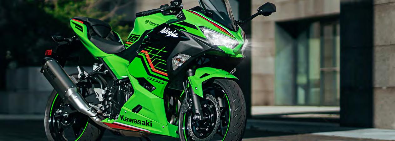 Colour Options Candy Lime Green / Ebony (KRT Edition) Technologies* Metallic Carbon Grey / Metallic Matte Carbon Grey £6,299 £6,099 ABS Economical Riding Indicator Assist & Slipper Clutch Ergo Fit Editions Ninja 400 Performance - From £6,749
