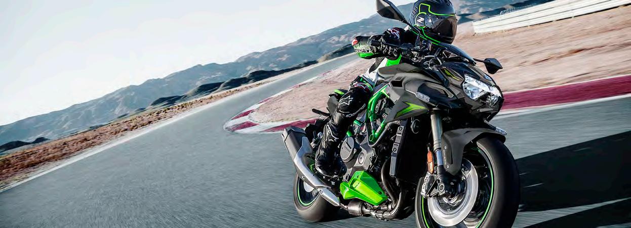 *Image for illustration purposes only *Key to technology items on back page NINJA H2R £50,000 7,500 miles service intervals or an annual service. Accessory prices are subject to change. Price includes VAT at 20%, delivery to dealer and preparation of motorcyde. Government charges are charged in addition. Factory order only, order window now closed for 2023. ENGINE Engine type Valve System Displacement Liquid-cooled, 4-stroke In-Line Four with Supercharger DOHC, 16 valves 998 cm³ PERFORMANCE