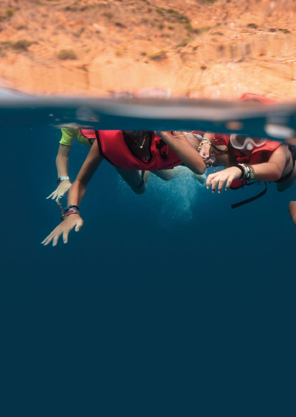 EN PORTADA: Alumnos de la Escuela de Timoneles del CN Altea buceando entre dobladas. Cala de la Mina. Foto: Vicente Seco.