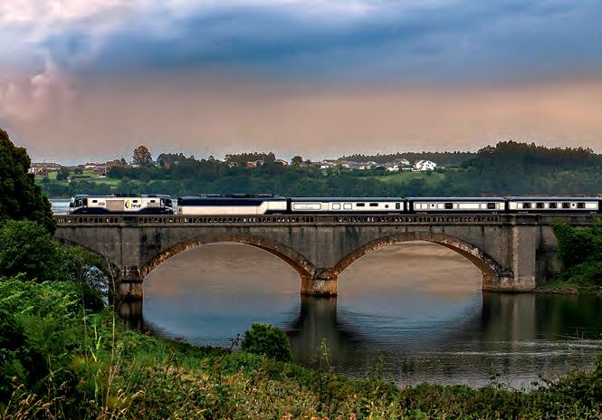 Hablamos también en este número de los viajes que hacen nuestros Trenes Turísticos, sobre los que con regularidad informamos en esta revista porque suponen una de las formas más placenteras de viajar en tren. Es el caso del Trenhotel comercializado con el nombre de Peregrino que recorre el Camino, este año el portugués, acercando a los peregrinos con alojamiento y transporte a la ansiada Compostela y del Transcantábrico, una de las joyas del patrimonio ferroviario. Esperamos que disfruten de todos estos viajes y sigan viviéndolos en tren.