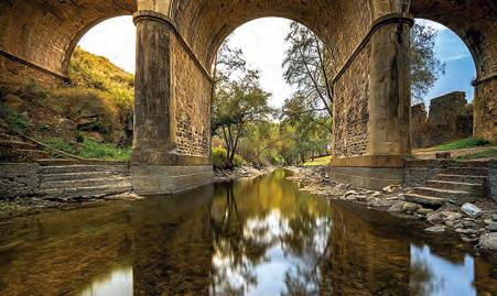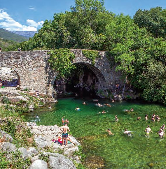 Un puente romano (en la imagen) cruza la Garganta de Alardos, un conjunto de piscinas naturales que se encuentran en Madrigal de la Vera (Cáceres). Pág. 34