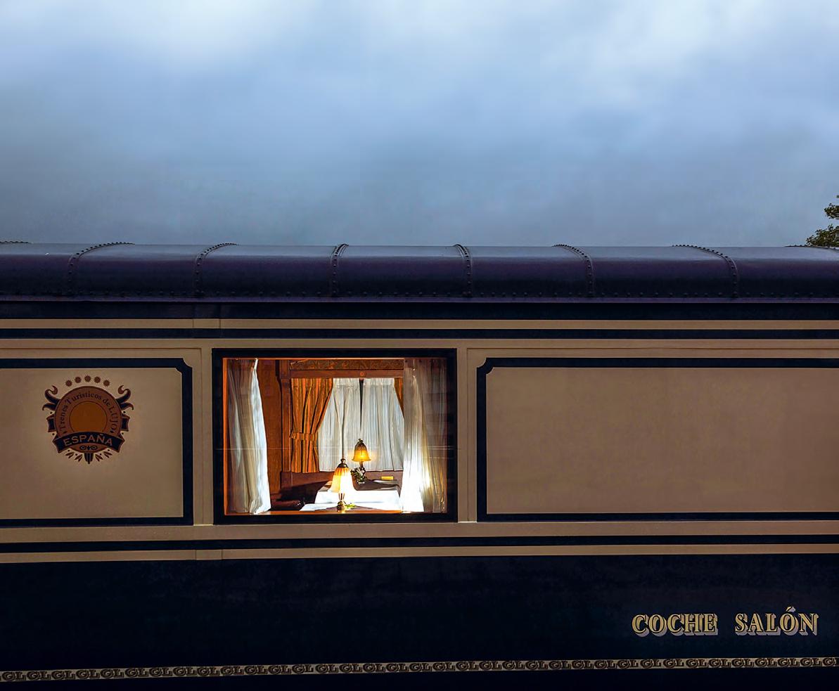 La armonía estética que provoca una parada nocturna del Transcantábrico.