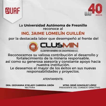Clusmin honra al Ing. Jaime Lomelín Guillen con placa conmemorativa